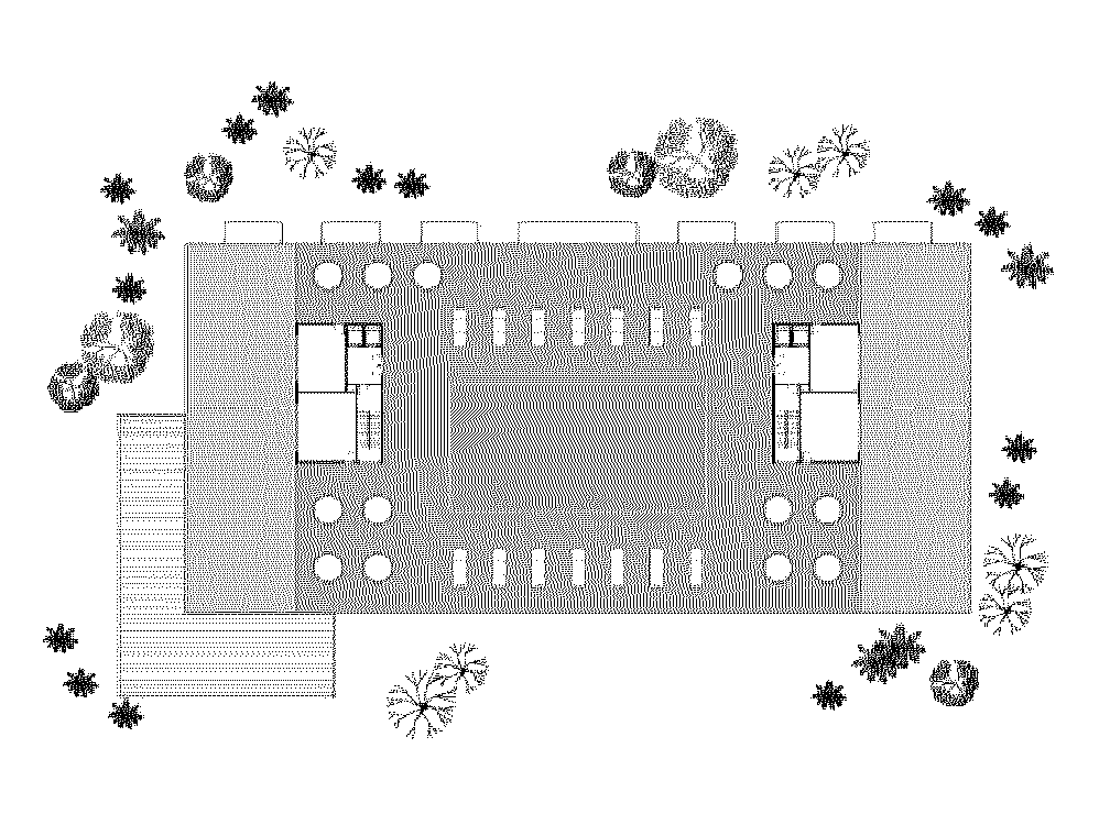 The placement of publicly-accessible outdoor plaza spaces to the side of the building results in increased spacing to accommodate the plaza.