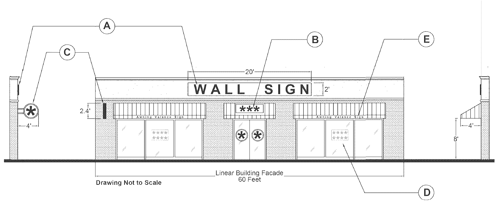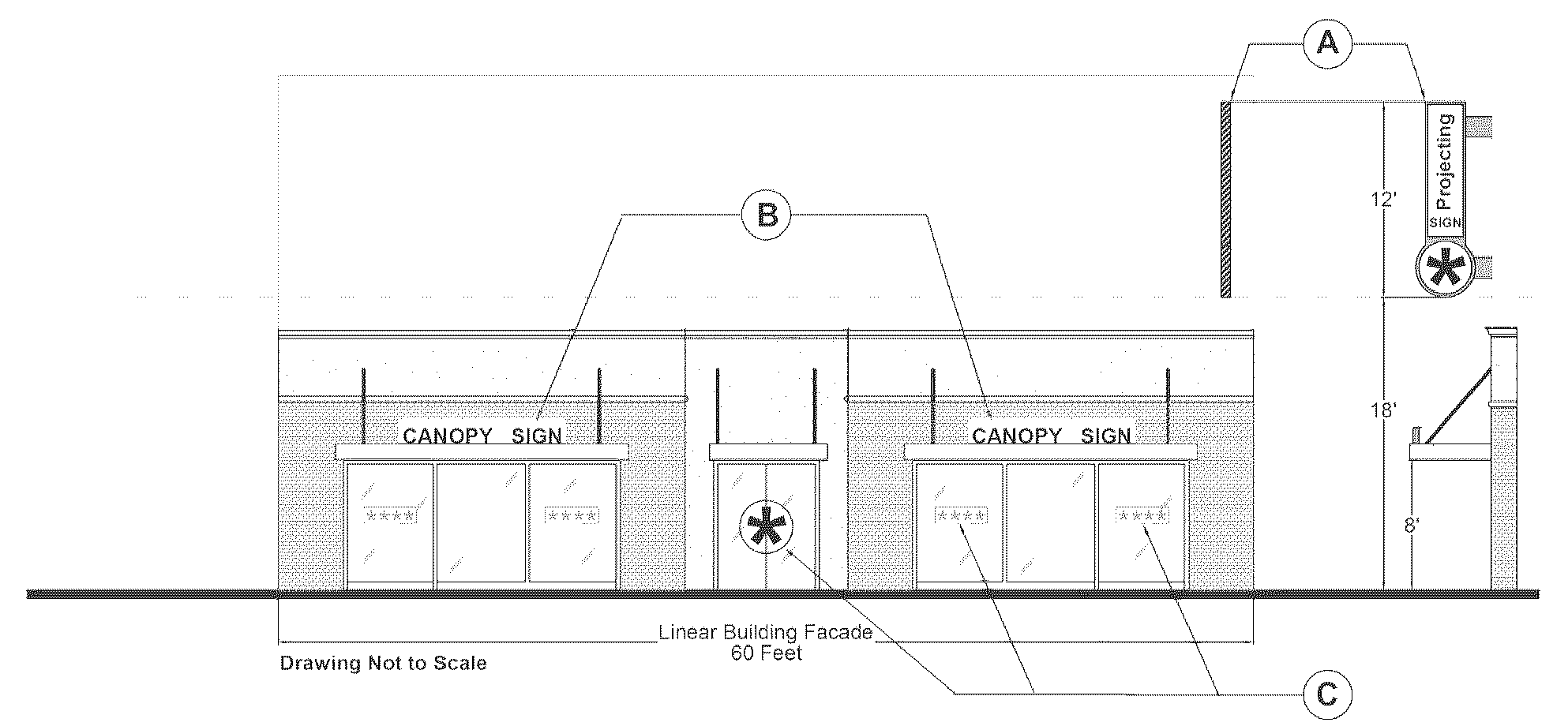 Number of Signs: No more than 1 sign per façade along a street frontage.