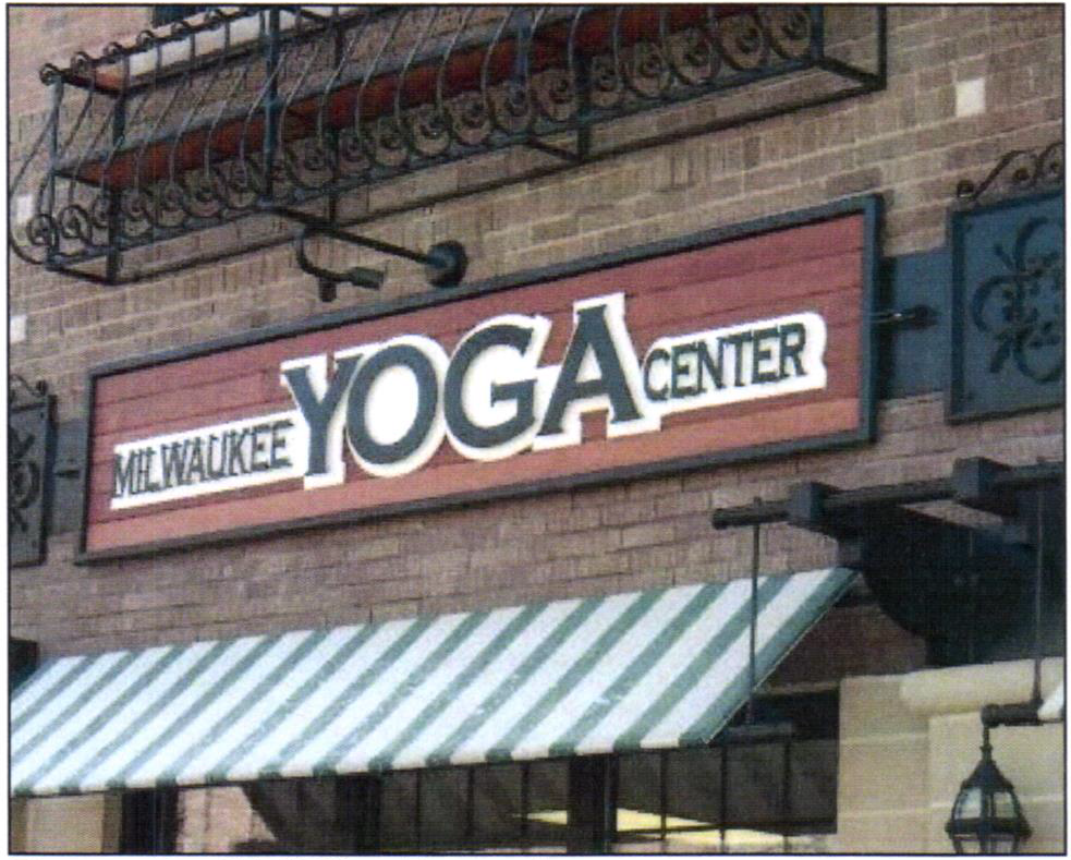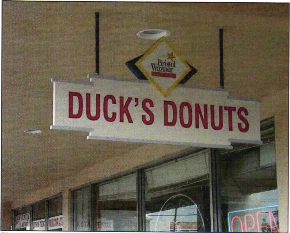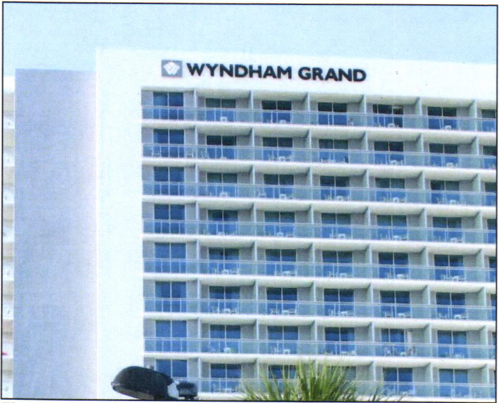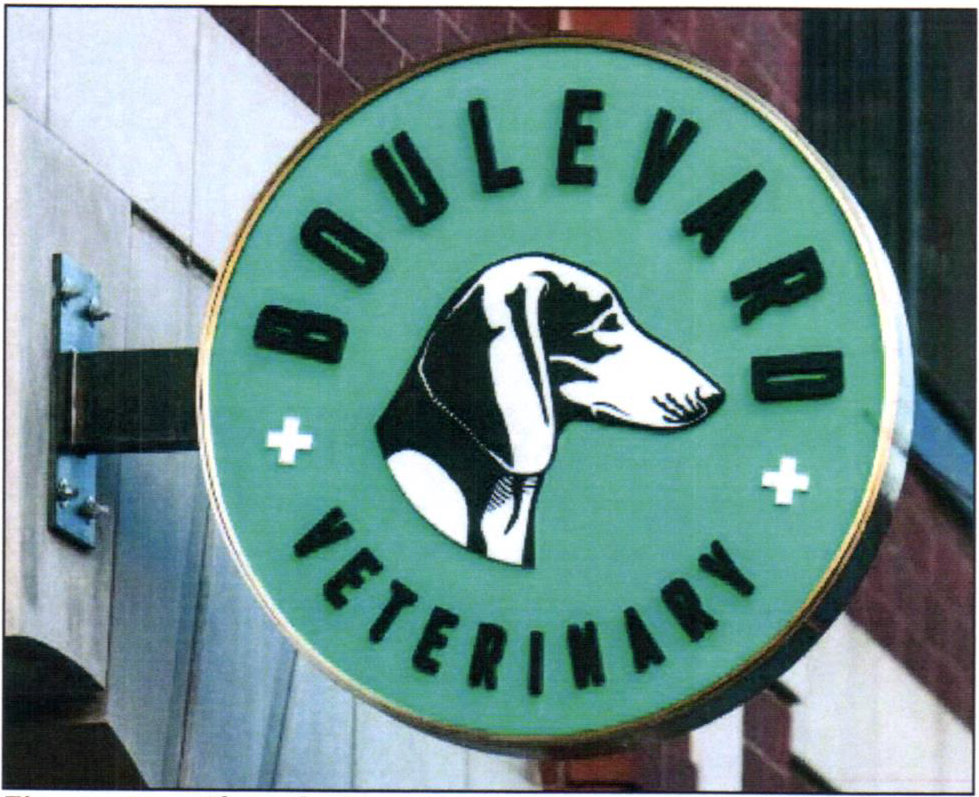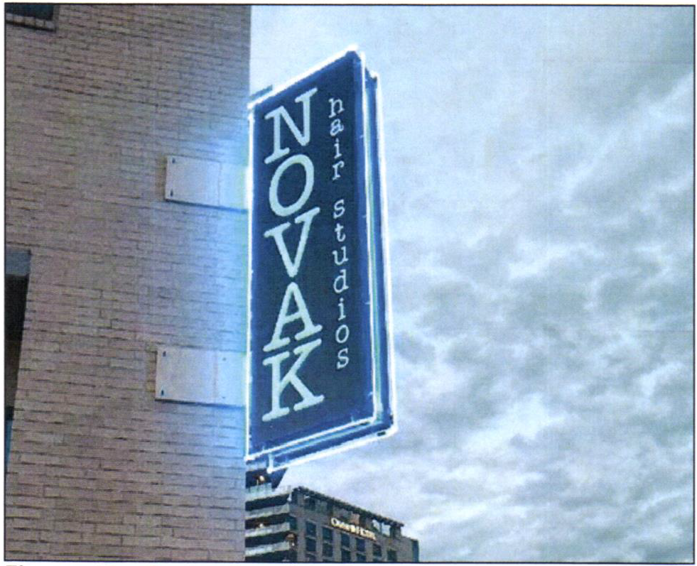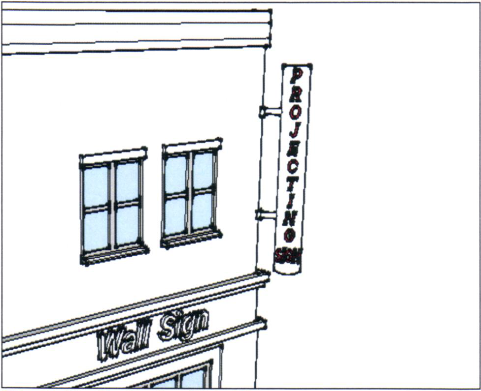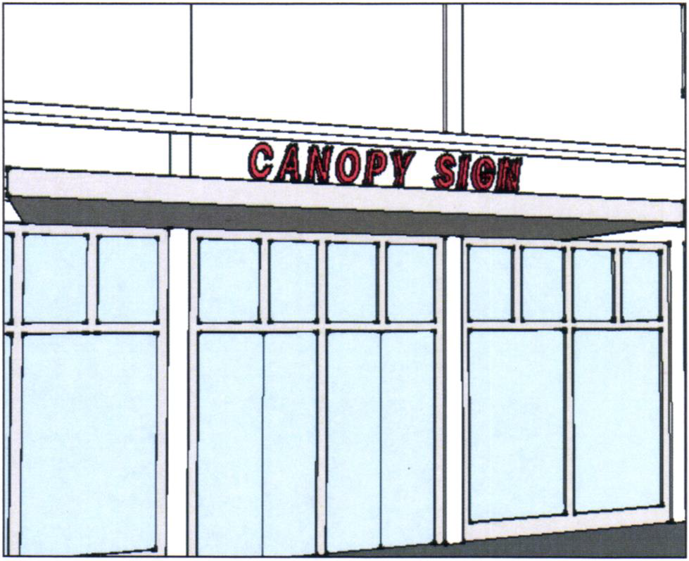 Description: A building sign that is attached to the exterior wall of the upper band of a building.