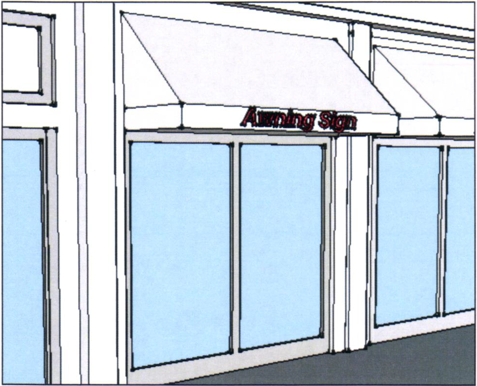 Window signs should be applied directly to the interior face of the glazing or hung inside the window, thereby concealing all mounting hardware and equipment.