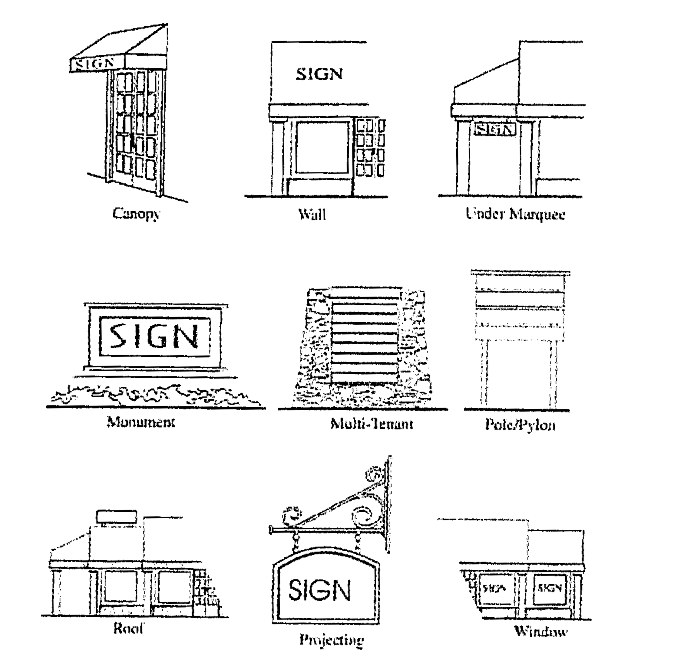 The table on the following pages describes the requirements for permanent signage per zoning classification: