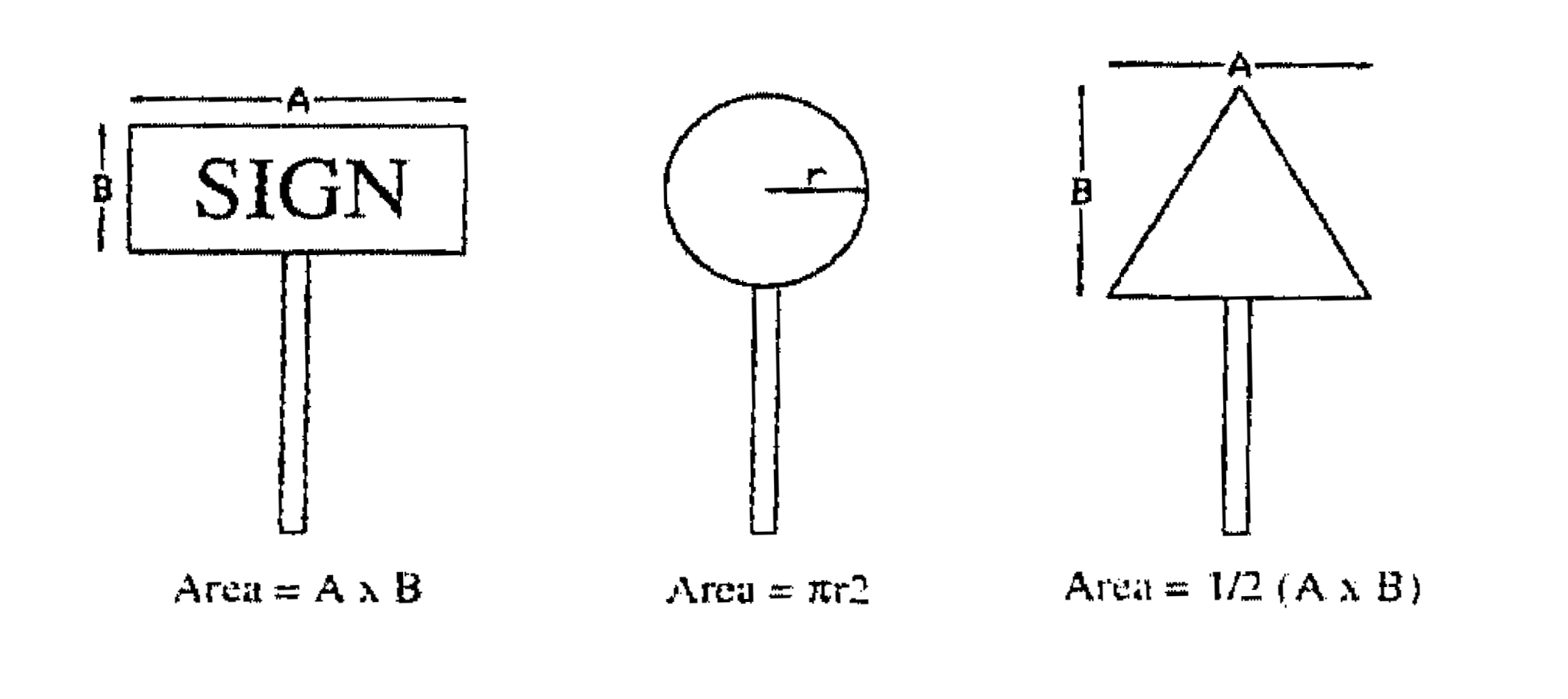 Computation of the maximum total sign area, the maximum area for individual signs and the height of signs.