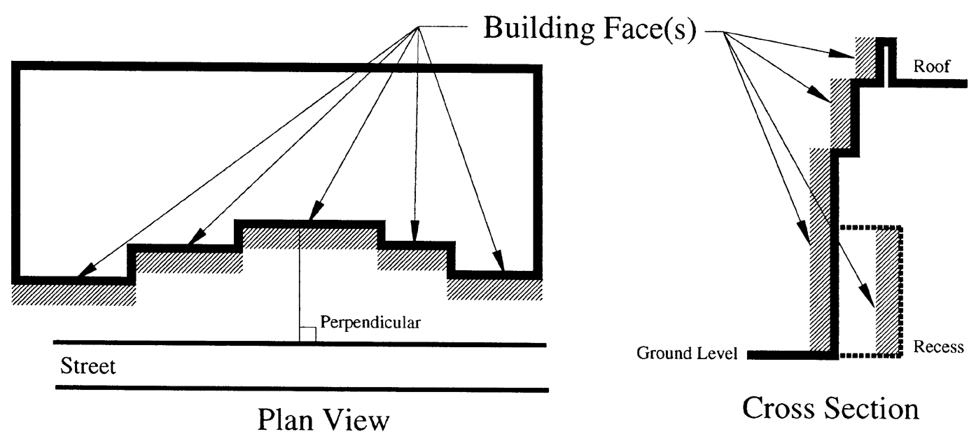 Building wall offsets, including projections, recesses, and changes in floor level shall be used in order to: add architectural interest and variety; relieve the visual effect of a single, long wall; and subdivide the wall into human size proportions. Similarly, roofline offsets should be provided to lend architectural interest and variety to the massing of a building and to relieve the effect of a single, long roof.
