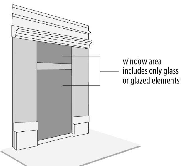 Clear glass window display area that covers at least twenty (20) percent of one facade, or thirty (30) percent of two facades.