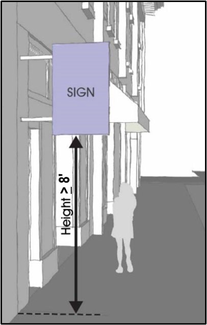 Covered pedestrian walkway (minimum of eight (8) depth) across the entire front facade of the structure.