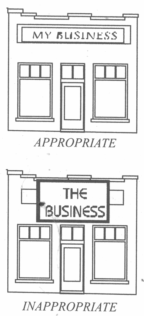 Signs are the most common and most frequently altered features in the downtown area. Signs identify business establishments, building names, products sold, and services provided. Signs contribute significantly to the visual character of the area, and inappropriate and competitive signage can have a tremendous negative impact.