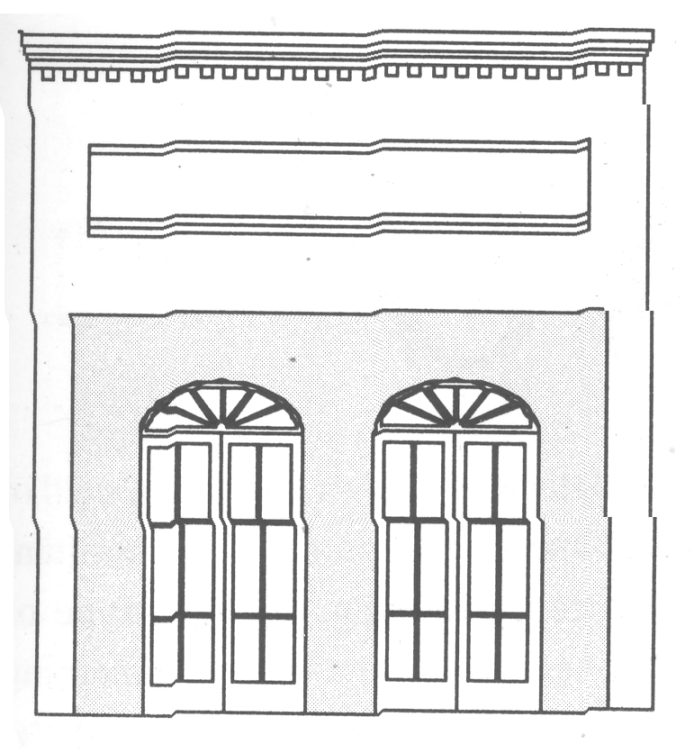 Principle 1:Historic shutters should be maintained. Shutters were used to provide shade, privacy, security, and decoration for buildings. Replacement shutters should be of the same material and design as the original. Where shutters have been lost or removed, historic photographs and hardware remnants may provide physical documentation of the original design. Windows which never had shutters should be left in this condition. Decorative shutters permanently affixed to the wall of a building are not considered appropriate replacements. Utilitarian type shutters on secondary elevations and on warehouse properties should not be replaced with decorative shutters.