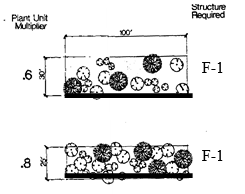 | TABLE 18.7 BUFFERYARD STANDARDS AND FENCE REQUIREMENTS | ||||