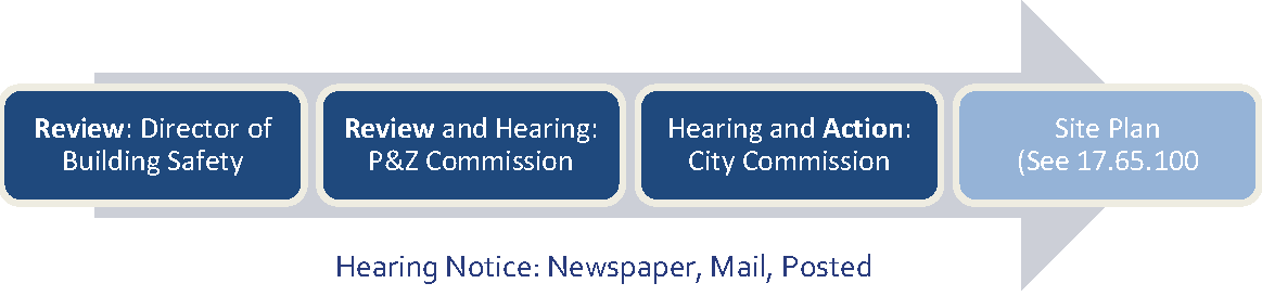 [1] Unless alternative site plan review procedure/decision-maker is established by city commission at time of development plan approval (see 17.65.100.C).