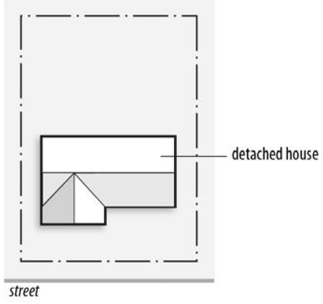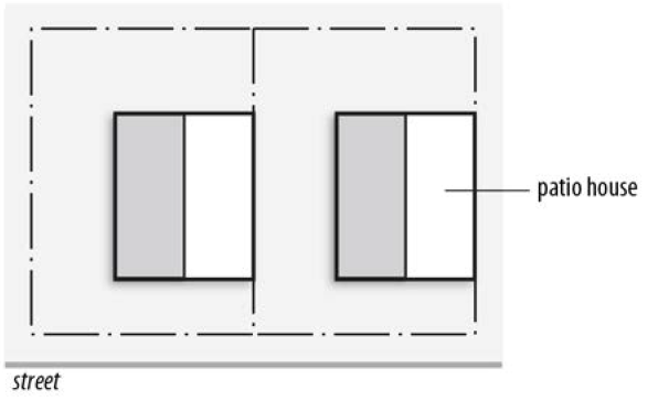 Lot Line House. A lot line house (sometimes referred to as a "patio house") is a principal residential building occupied by one dwelling unit and that is located on a single lot that is not occupied by other principal residential buildings. Lot line houses are not attached to and do not abut other dwelling units. A lot line house is shifted to one side of the lot so that there is a more usable side yard on one side of the house and very little or no private yard on the other side. Lot line houses are subject to the same lot and building regulations that apply to detached houses except as modified by the following regulations: