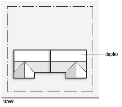 Duplex. A duplex is a principal residential building occupied by two dwelling units, both of which are located on the same (single) lot, which is not occupied by other principal residential buildings. The two dwelling units are attached and may be located on separate floors or side-by-side.