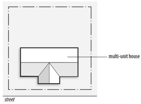 Multi-unit House. A multi-unit house is a principal residential building that contains three or four dwelling units that share common walls and/or common floors/ceilings. The building is located on a single lot that is not occupied by other principal residential buildings. Multi-unit houses have the appearance of large detached houses and have only one entrance visible from the street.