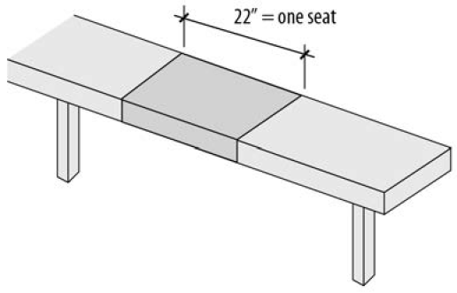 Bench Seating. For the purpose of calculating parking requirements based on seating, each twenty-two linear inches of bench or pew length is equivalent to one seat.