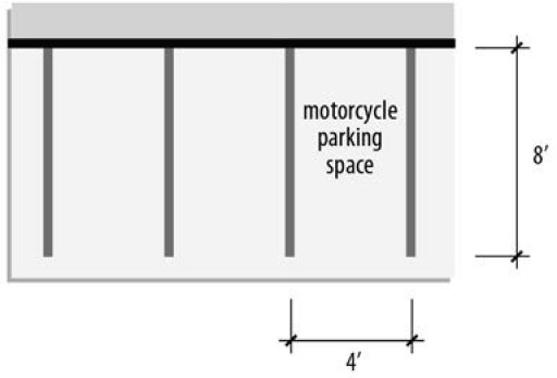 Motorcycle and Scooter Parking. In parking lots containing more than ten parking spaces, the provision of motorcycle or scooter parking spaces may be credited toward satisfying the minimum off-street parking ratios of Table 40-1 at the rate of one motor vehicle parking space for each two motorcycle or scooter parking spaces. The maximum credit allowed under this provision is two spaces or ten percent of the total minimum motor vehicle parking requirement for the subject property, whichever is greater. To receive credit, each motorcycle and scooter space must have a concrete surface and minimum dimensions of four feet by eight feet. This provision applies to existing and proposed parking lots.