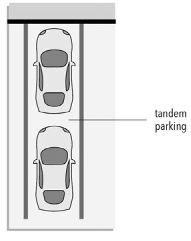 Tandem Parking. Tandem parking spaces may be used to satisfy parking requirements for household living uses when the spaces are assigned to the same dwelling unit. In all other cases required parking spaces must be designed to allow each parking space to be accessed without passing through another parking space. Tandem parking arrangements must have a minimum stall of nine feet and a minimum length of thirty-six feet.