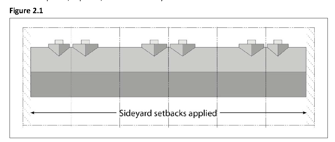 Attached single-family dwellings. Required setbacks apply to the ends of rows of attached single-family dwellings (examples of attached single-family dwellings include duplexes, triplexes, and townhouses).