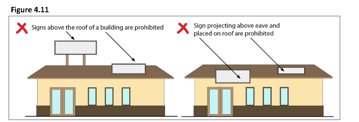 A combination of up to three (3) types of said signs may be used during the event. No inflatable signs, balloons, banners, feather signs, flags, pennants, streamers, or any other advertising devices may be mounted on or above roofs or extend above a parapet wall or ridge line of a structure.