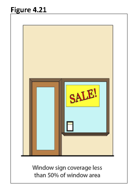 Contents: Window signs include text indicating hours of operation, address information, advertisements for any purpose, and environmental graphics.