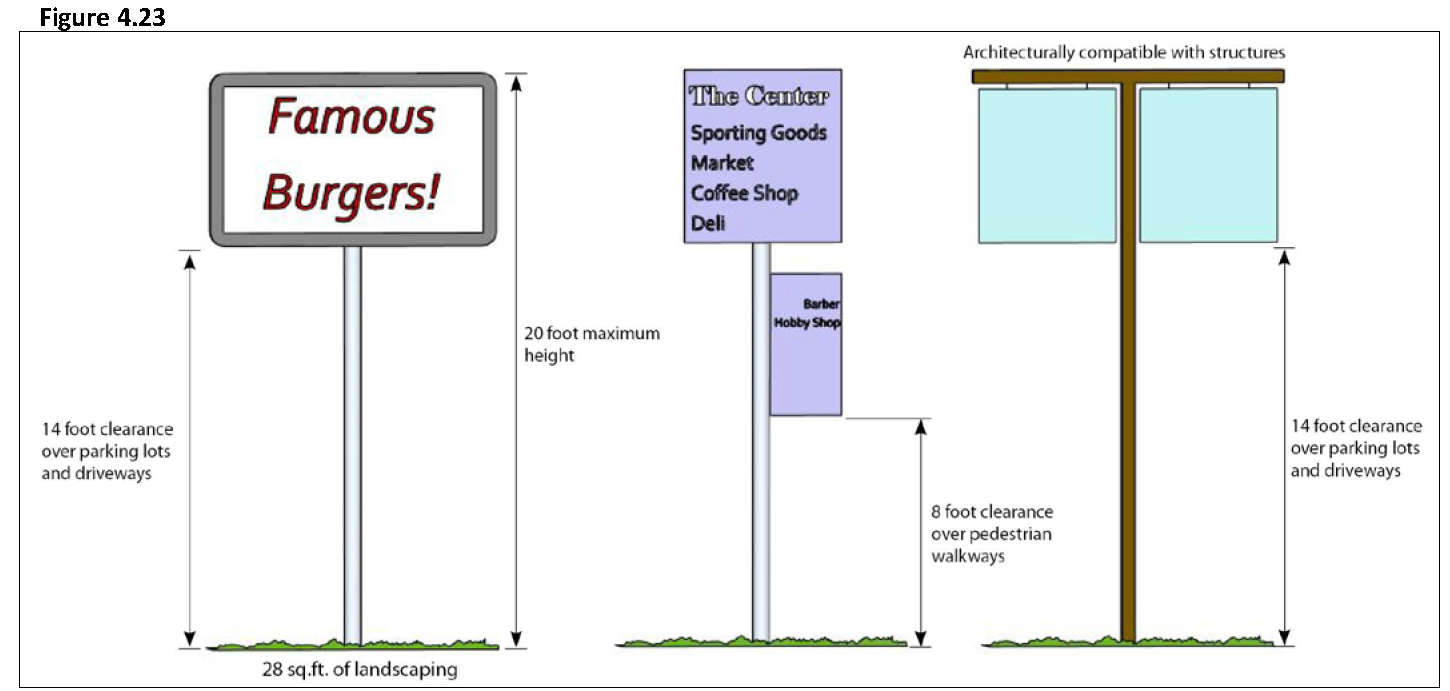 Landscaping. Pole signs shall be placed within a landscaped planter with at least twenty-eight (28) square feet of planting area. As a condition of any permit for a pole sign, additional landscaping of the property may be required where needed to better integrate sign appearance with the site through scale and softening effects.