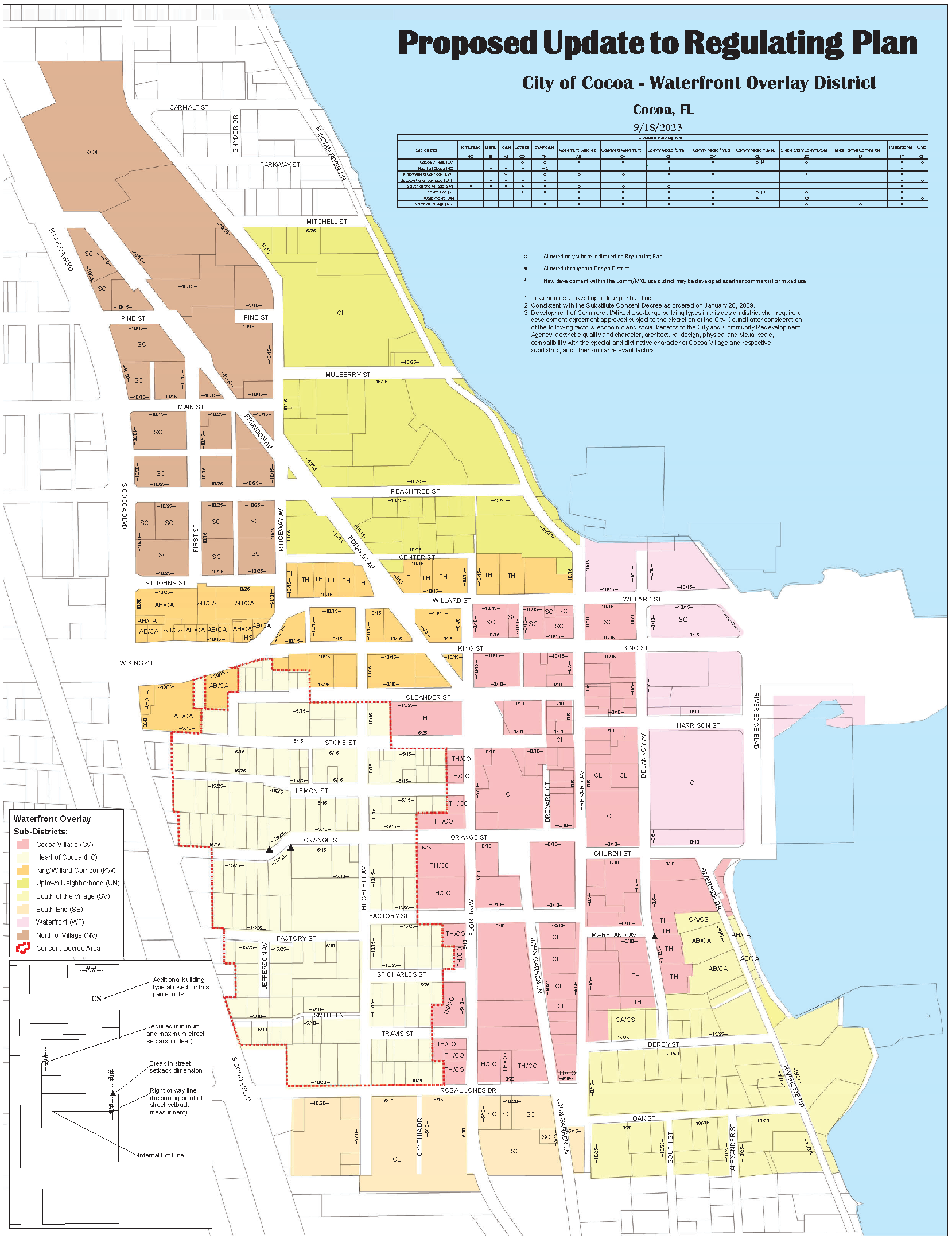 Building Types. Building types are permitted by Sub-district when any new and/or redevelopment occurs on any parcel within the Cocoa Waterfront Zoning Overlay. The building typologies are consistent with the size, scale and character desired within each sub-district.
