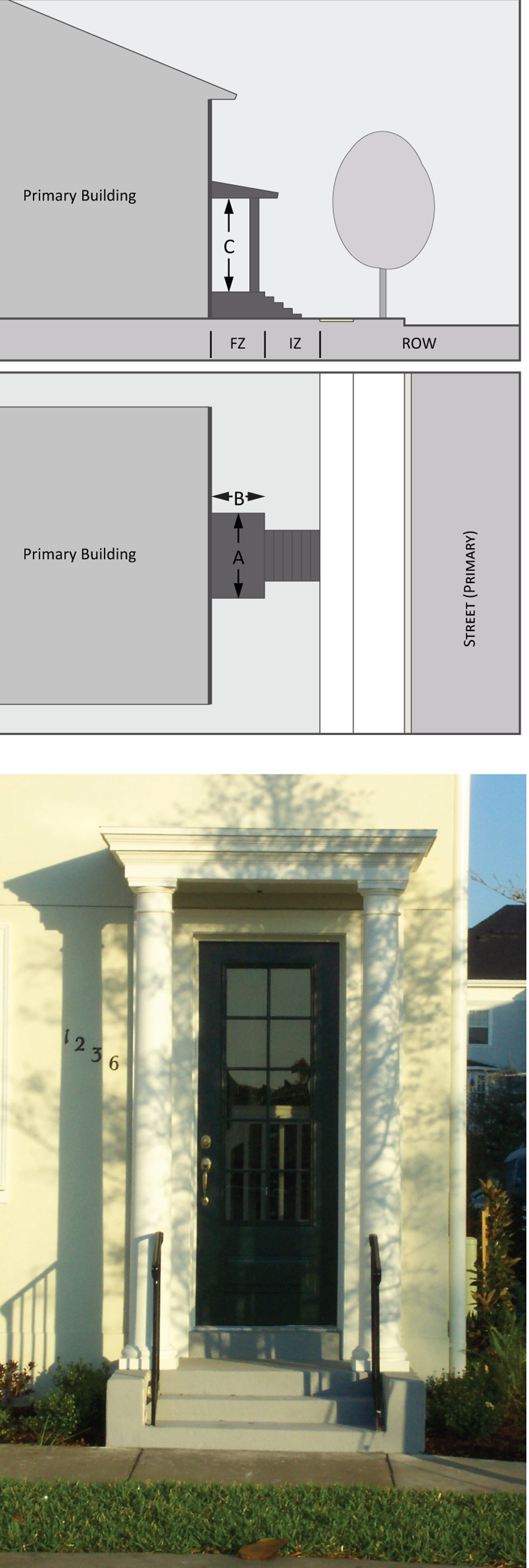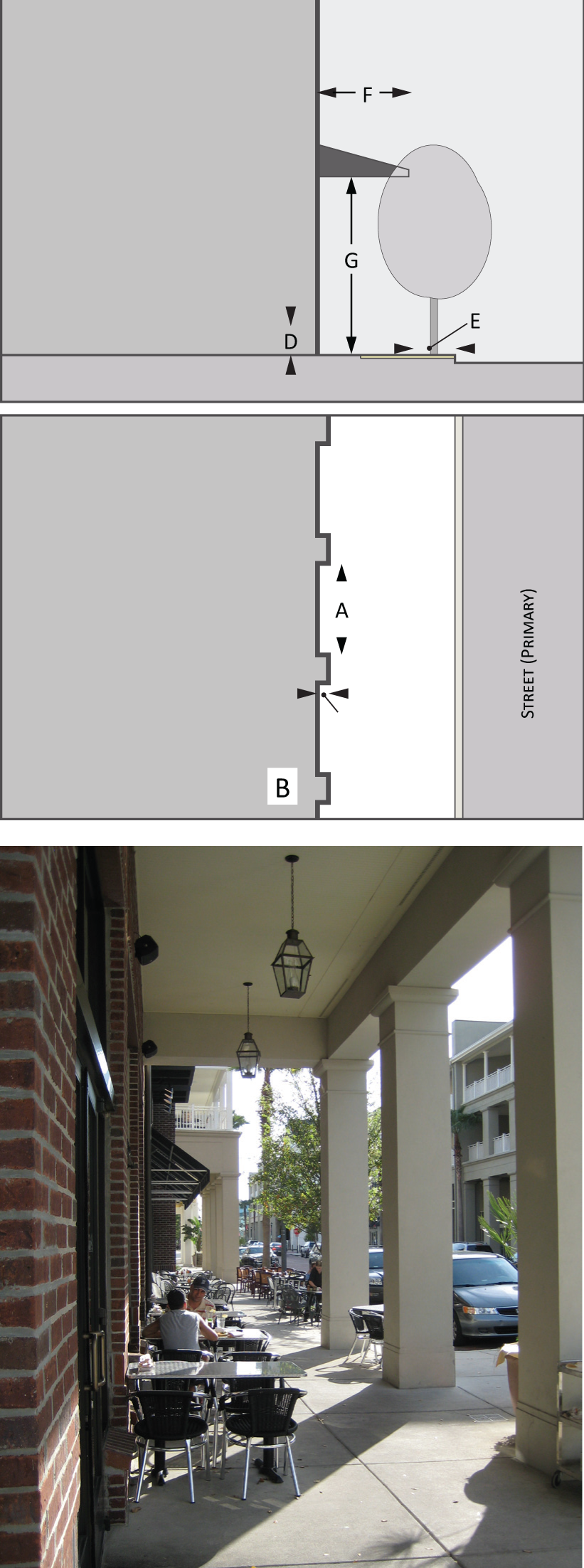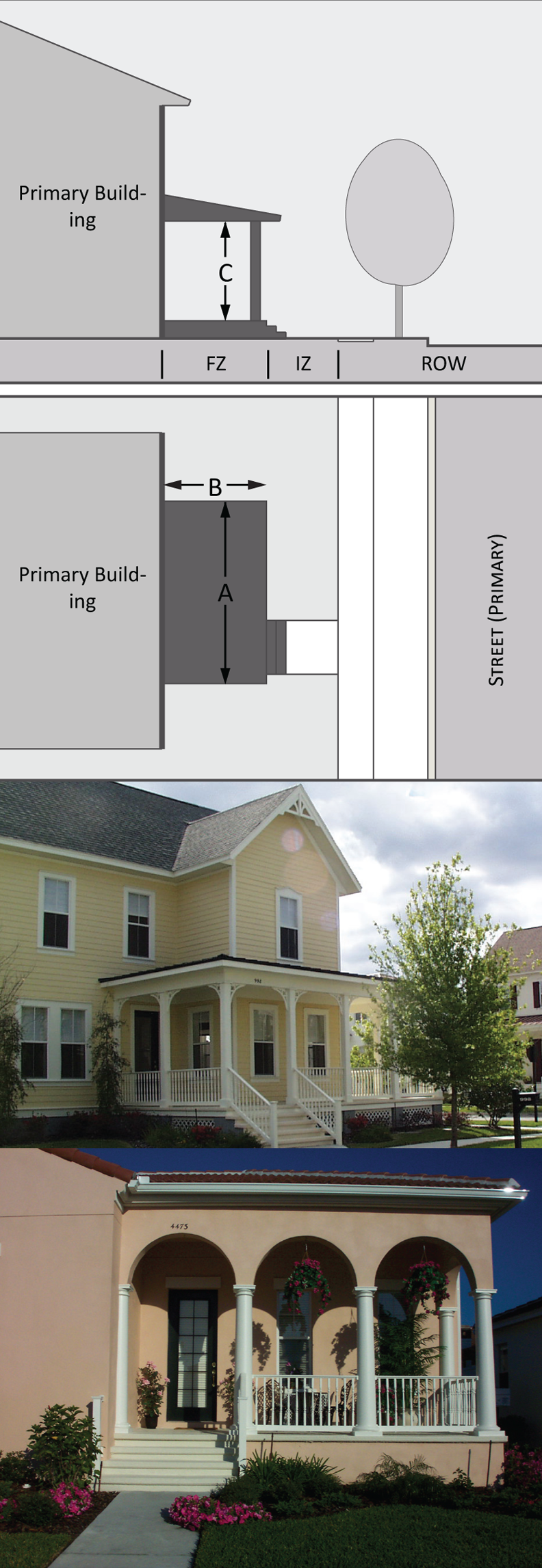 The following private frontages are either required or permitted by building type and/or district as provided in the tables on each building type. The specific parameters for each private frontage are illustrated in this section.