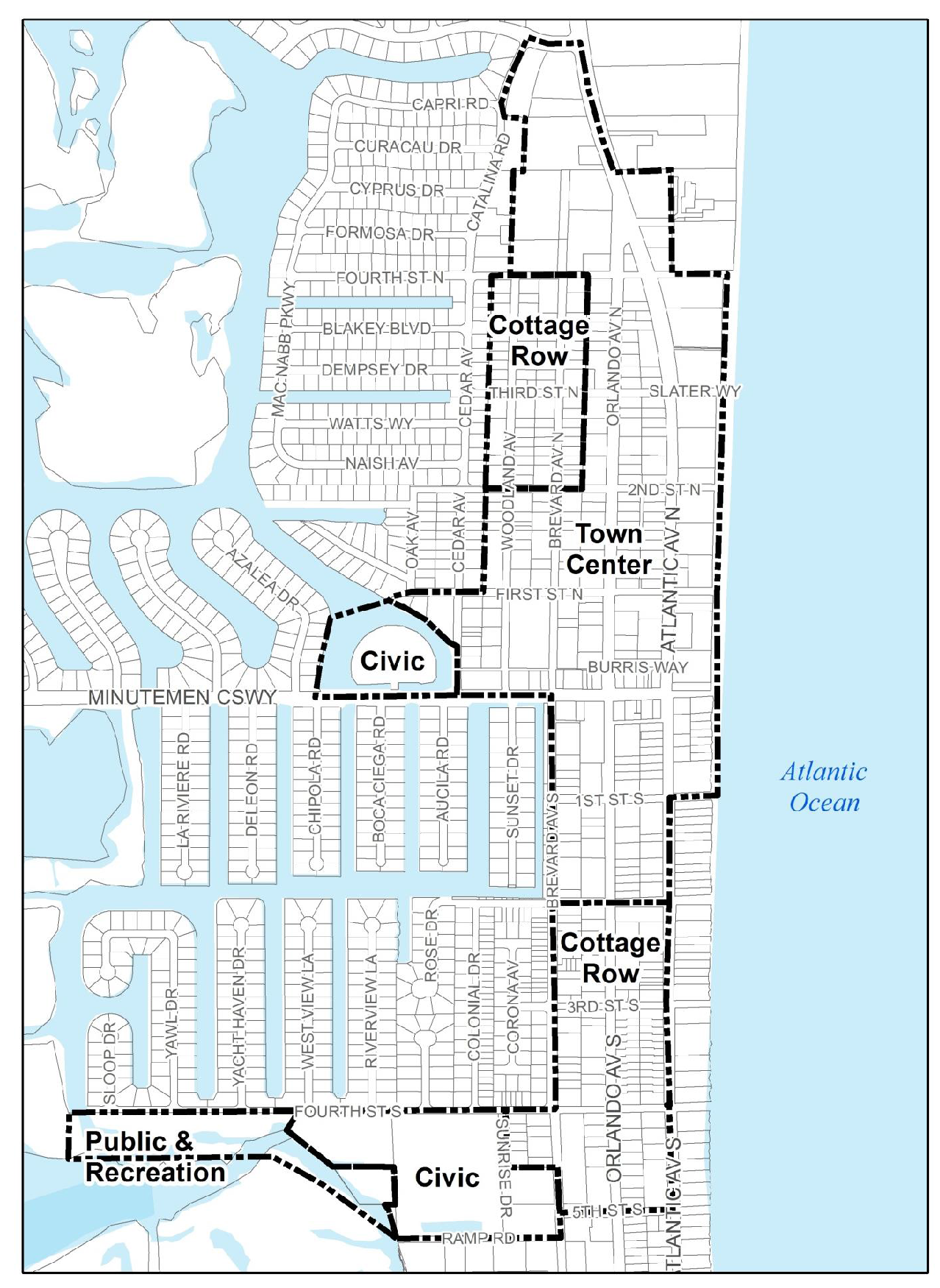 The city is hereby divided into zoning districts, as shown on the official zoning map which is hereby adopted by reference and declared to be a part of these LDC regulations. The city commission has given careful consideration to the peculiar suitability of each zoning district, their specific development regulations, and the various uses, densities and intensities for each district, in accordance with the overall plan for the development of the City of Cocoa Beach.