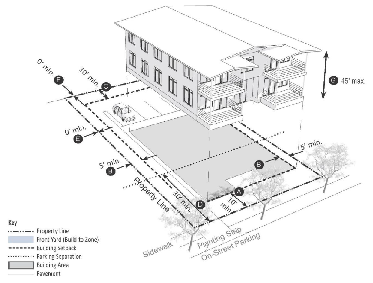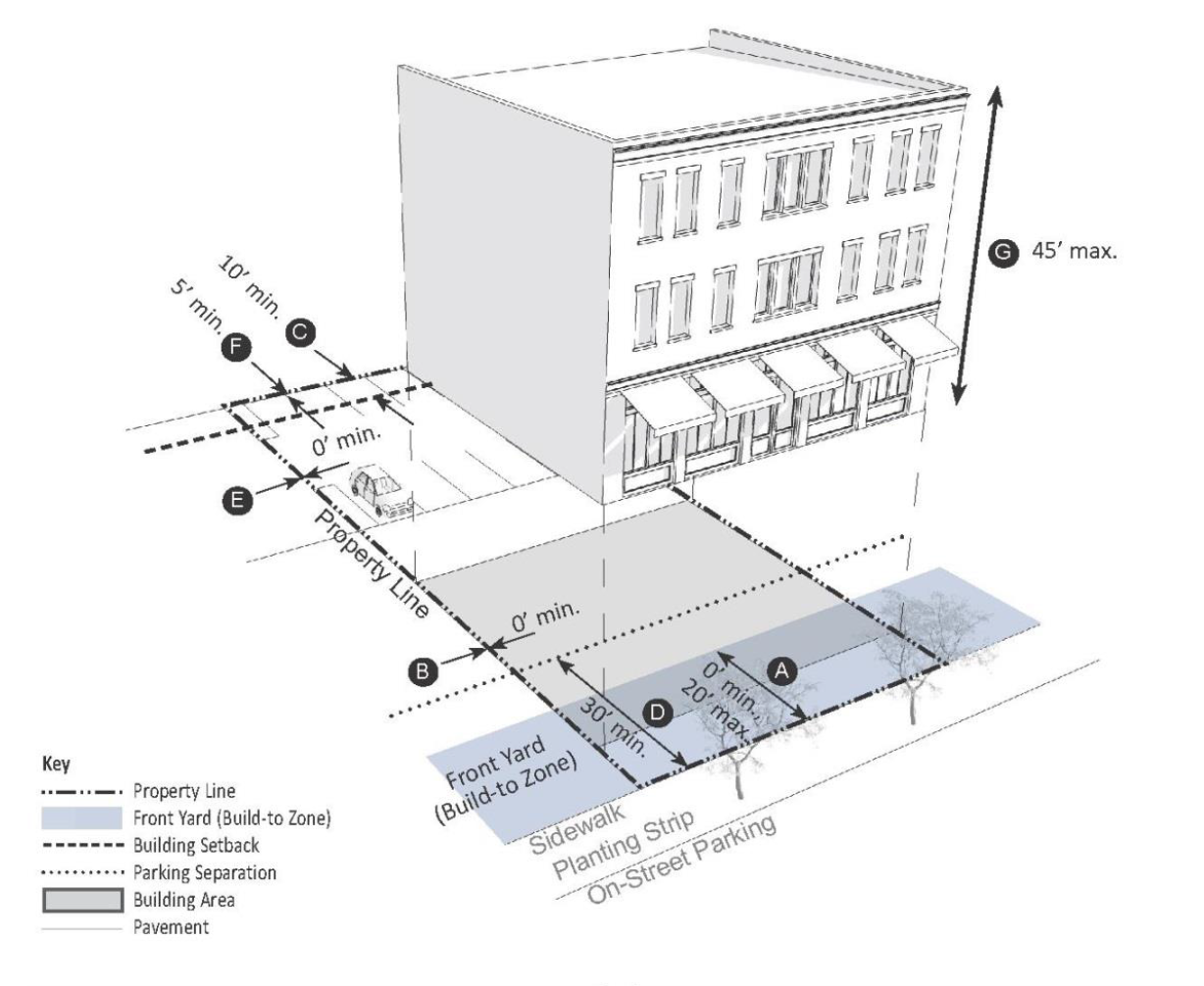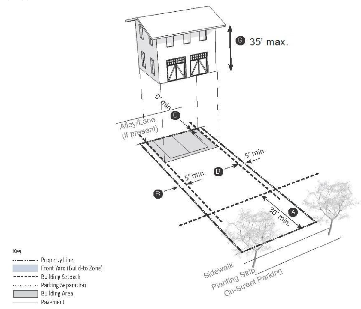 The dimensional design standards for standard zoning districts in this article are detailed within each zoning district description and summarized in Tables 2-16 and 2-17.