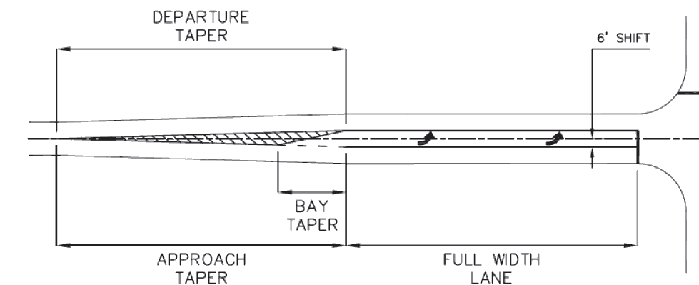 Deceleration lanes shall be constructed to the dimensions shown in Table 7-5.5. Width of deceleration lanes shall be 12 feet minimum.