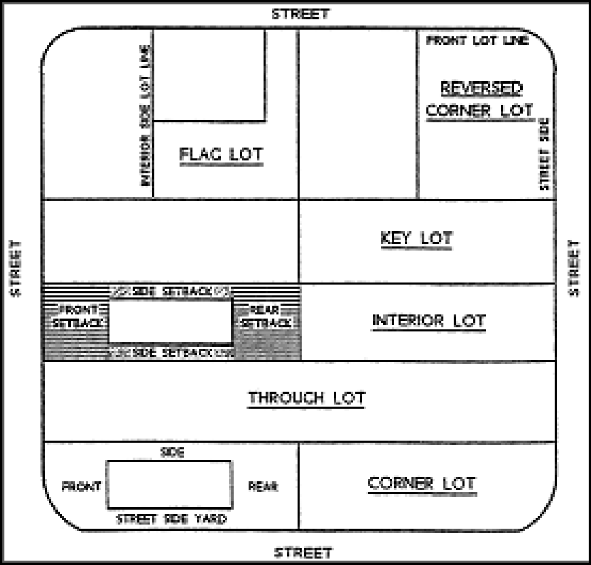 "Lot, key" means a lot with a side line that abuts the rear line of any one or more adjoining lots. (see figure under "lot, corner").