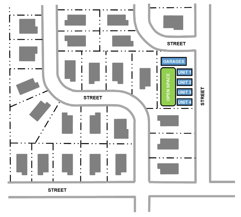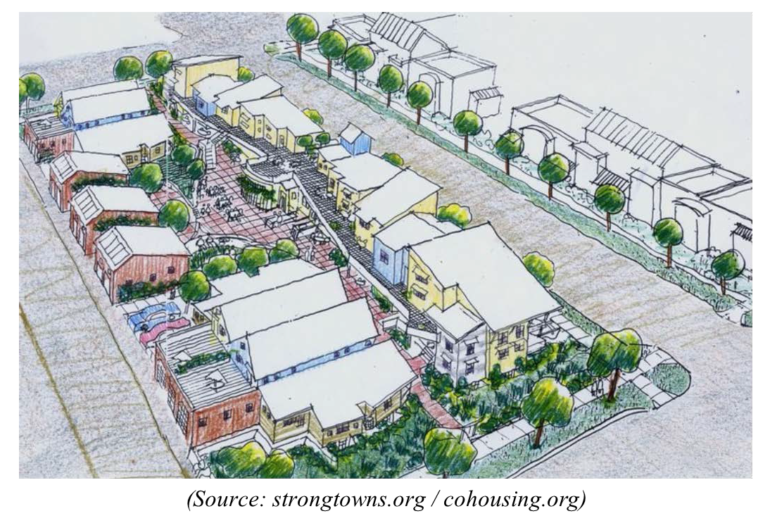 "Co-housing" means a residential development that combines individual owned dwelling units clustered around shared space. Units may have smaller kitchens with a larger community kitchen and dining room intended for communal use on a regular basis The development may also provide other facilities for communal use and interaction, and in which residents may agree to share in the provision of regular communal services such as cooking meals or providing child care.