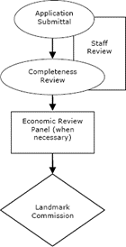 The following table illustrates the types of review requiring a public hearing and the review body responsible for conducting the hearing.