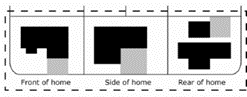 To the side of the single-family structure; or