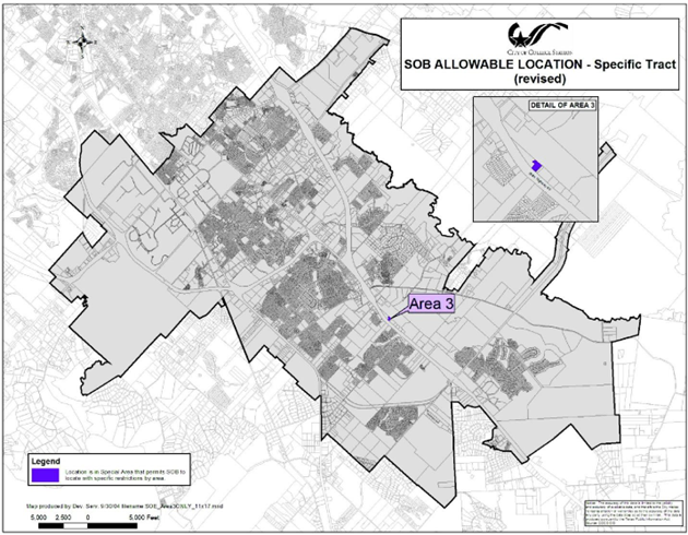In SC Suburban Commercial, restaurants with a drive-in/thru window must be located a minimum of one hundred fifty (150) feet from any single-family use or zoning district. Additionally, associated drive-in and drive-thru facilities (speaker box, message board, and pick-up window) may not be located between the restaurant and any single-family use or zoning district; except when the single-family use or zoning district is located across a public street.