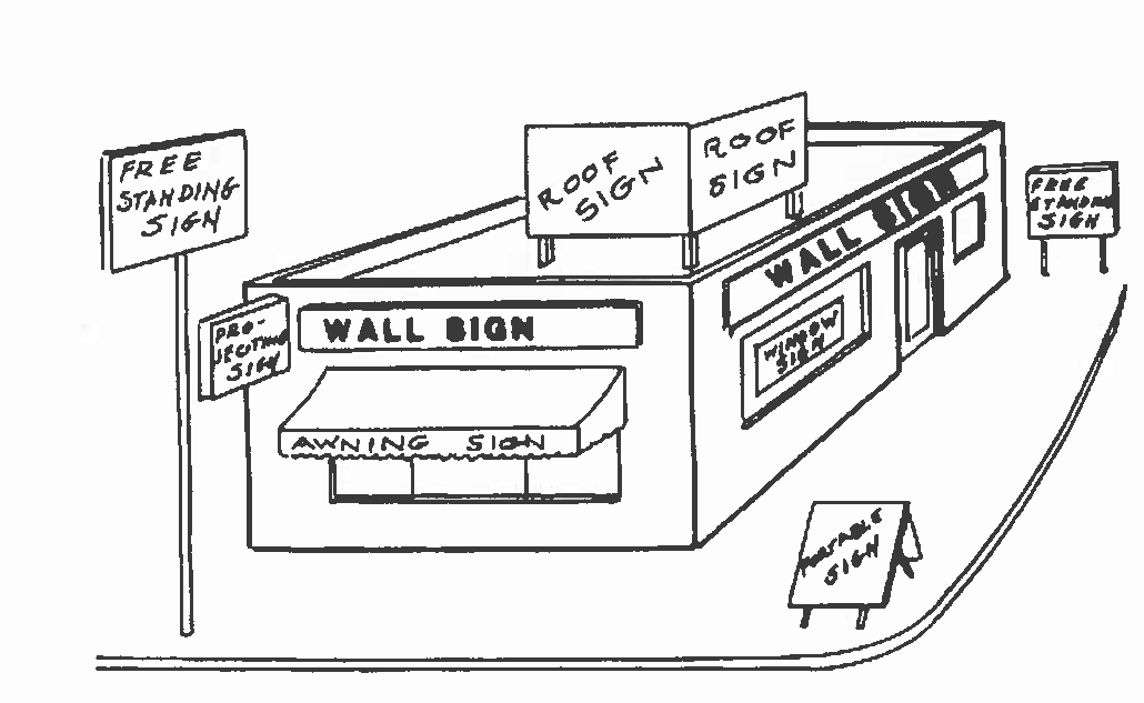 A sign is any communication device, structure, or fixture that incorporates graphics, symbols, or written copy intended to promote the sale of a product, commodity, or service, or to provide direction or identification for a premises or facility. The following are descriptions of the different types of signs regulated by this article: