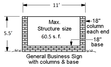 Base and Column Requirements: At a minimum, a general business sign shall be constructed to include a base and columns as described below. Said base and columns shall be included in the calculation for determining the overall structure size for compliance with these regulations.