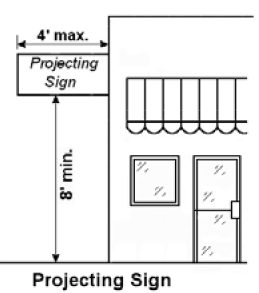Pedestrian Clearance. No permanent freestanding sign may project over a pedestrian walkway, unless there is a minimum of eight (8') feet of clearance provided from the bottom of the sign to the grade below the sign.
