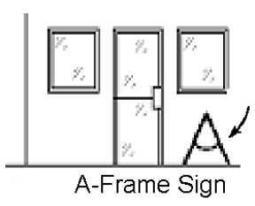 A-Frame Signs: The purpose of an A-frame sign is to provide temporary advertising during business hours of a commercial occupancy.