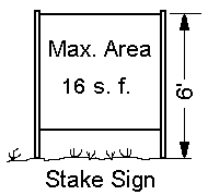 Stake Signs: A stake sign shall not exceed sixteen (16) square feet, nor exceed six (6) feet in height.