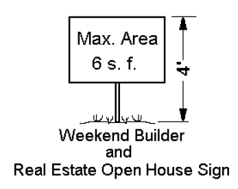 A weekend builder/real estate open house sign shall not exceed six (6) square feet in area and four (4) in height. No sign shall be placed on trees, utility poles, traffic control signs or within a street median or encroach over a sidewalk.