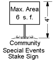 Stake Signs: Signs shall not exceed six (6) square feet in area nor exceed four (4) feet in height.