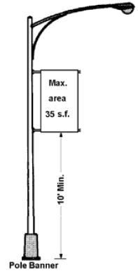 Maximum area and height: Thirty-five (35) square feet in area per pole and thirty-five feet (35') from the ground, provided the banner maintains a minimum of ten feet (10') of clearance between the bottom of the pole banner and the ground.