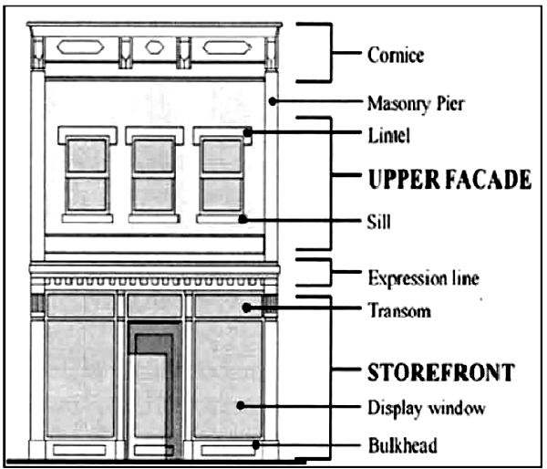 Ground floor windows remain along the front sidewalk to maintain the pedestrian orientation of the streetscape.
