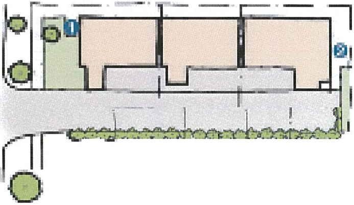 Enhanced paving should mark the pedestrian and vehicular entries of complexes to provide a sense of arrival.