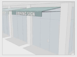 Awning. A roof-like cover, made of fabric, or other flexible material, over a door or window and attached to a building.