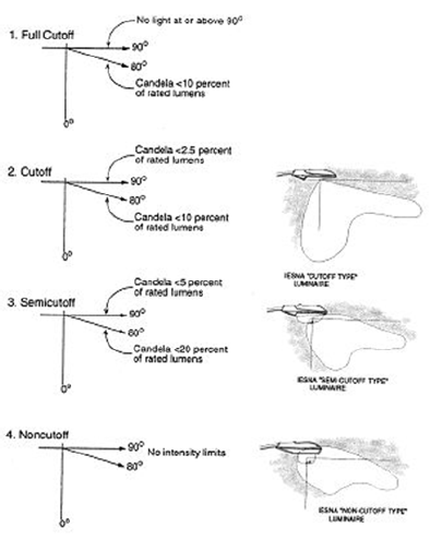 Cutoff angle. The angle formed by a line drawn from the direction of light rays at the light source and a line perpendicular to the ground from the light source above from which no light is emitted.