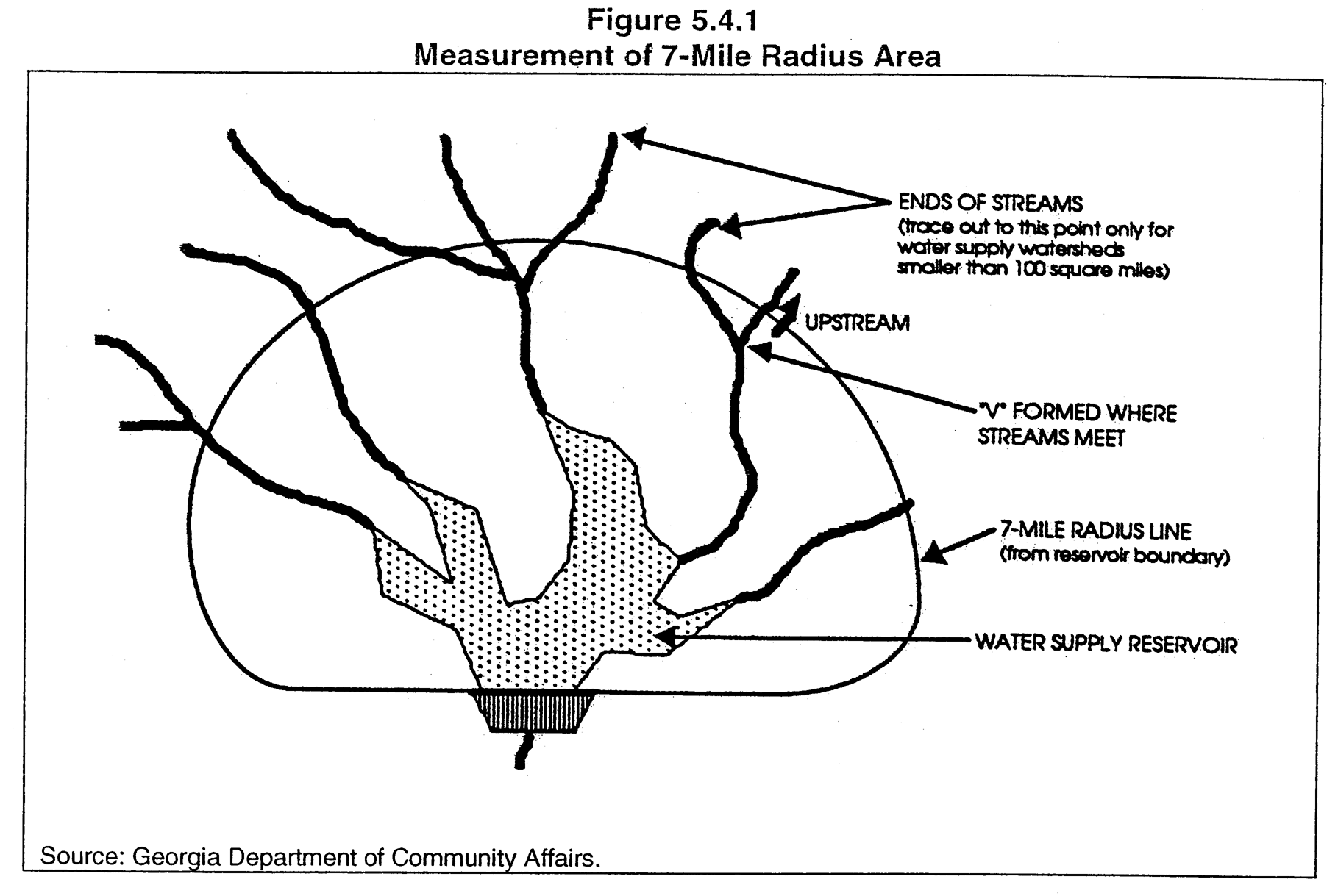 All lands within the Chattahoochee watershed located within a 7-mile radius of the boundary of any water supply reservoir.