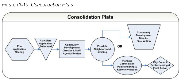 The city council requests that the consolidation plat be reviewed through a public hearing process if such request is made before the date scheduled for department approval.