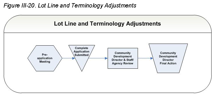 Review. The director and the DRT, as deemed appropriate by the director, will review applications for lot line or terminology adjustments ("adjustments"). The director is authorized to approve, approve with conditions, or deny such applications based on the criteria below.
