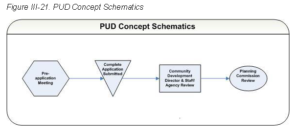 Description. A PUD concept schematic is a generalized land use/site plan for an area proposed to be included within a PUD district. It is the first step in the PUD process and it allows early, informal evaluation of a proposed PUD zoning district before substantial expenses have been incurred. The PUD Concept Schematic provides the city staff and the applicant an opportunity to determine the development's conformance with the comprehensive plan and the requirements of this land development code, and assists the applicant in the preparation of a PUD zone document. The director may waive the requirement to file a PUD concept schematic.