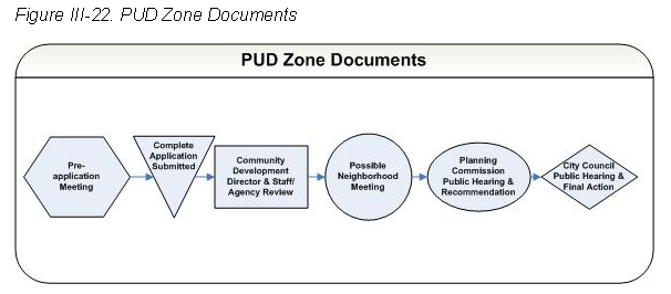 Description. A PUD zone document establishes entitlements for property including allowable land use and bulk standards. A PUD zone document covers all of the land area to be included in the PUD, or an identified phase of a PUD, and identifies the type and total amount of development to occur within the PUD (dwelling units and nonresidential floor area), as well as the proposed plan for pedestrian and vehicular circulation within and leading to the PUD. An applicant may submit a sketch or final (when applicable) plat or a PUD permit application for simultaneous processing with a PUD zone document.